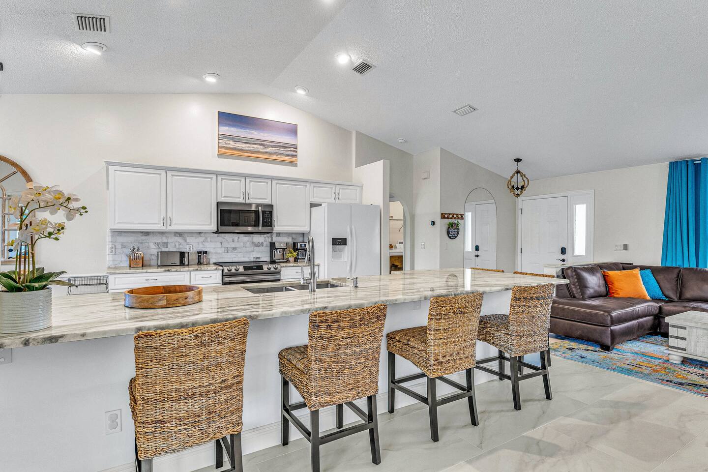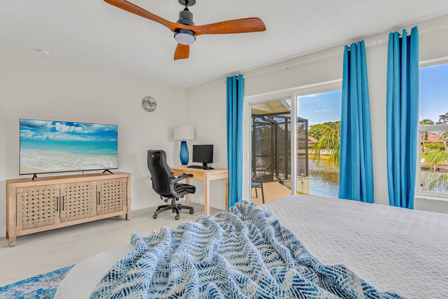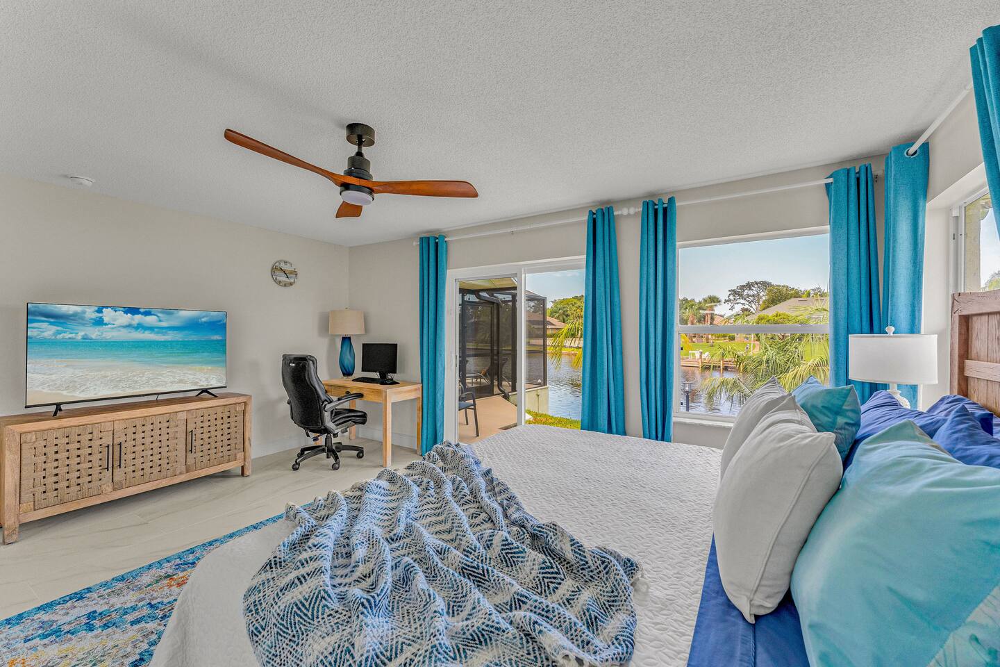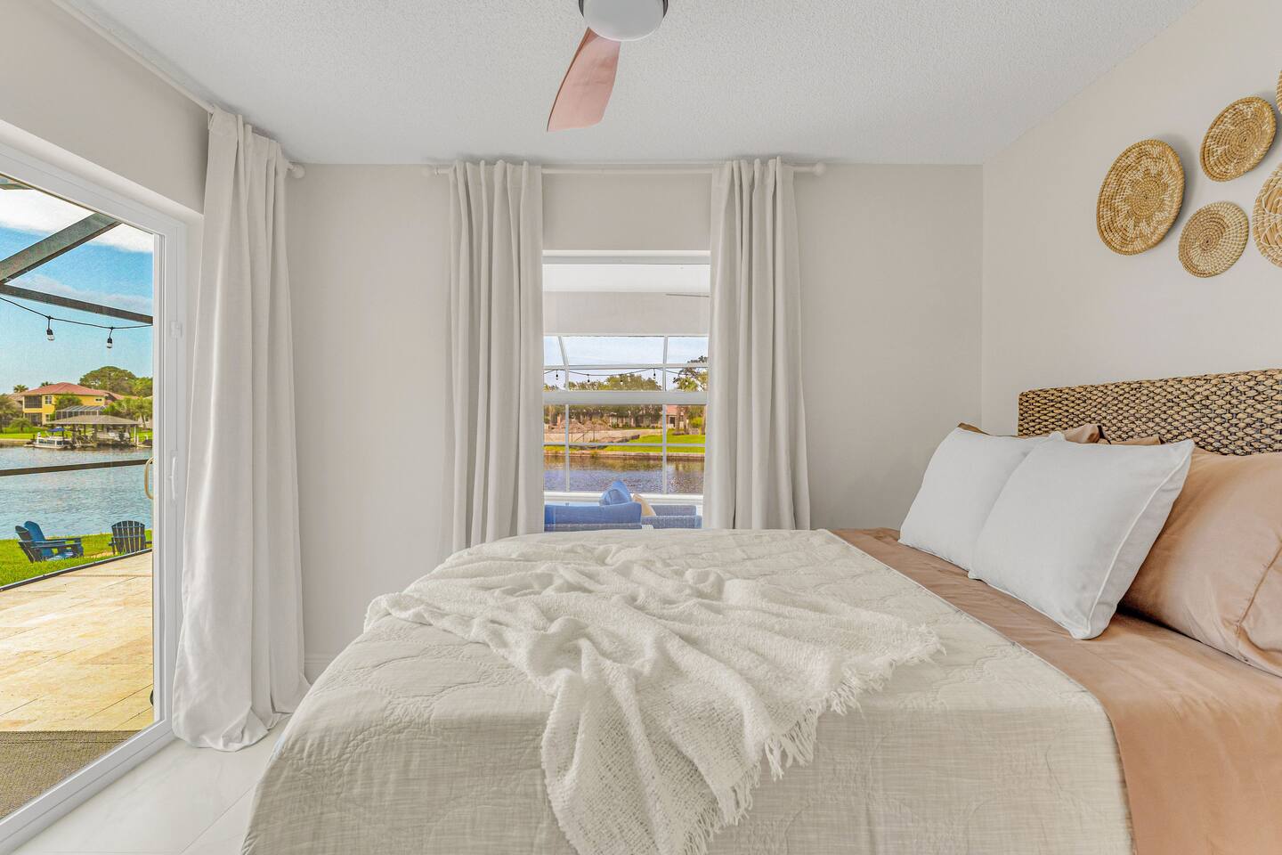 LAGUNA PARADISO: *Stunning 180+ degree saltwater canal views form the living room, dining area, master bedroom and Laguna Paradiso bedroom as well as the pool/spa area, firepit area and BBQ area. Fully renovated and immaculately maintained inside and out. Open floor plan with beach inspired décor. LIVING ROOM: * Overlooking the canal and pool/spa area *70" flat-screen Smart ROKU TV, surround soundbar system, two living areas with expandable queen size memory foam sofa bed, Board Games, Books and more. POOL AREA: Screened private pool and spa with a truly spectacular view to the lagoon *Heated pool (3.5ft to 6 ft deep), jetted heated six person spa. POOL HEATER MAY BE ADDED to your reservation in order to heat the pool or spa @ $30.00 a day for the duration of your stay. *We cannot guarantee pool and spa temperatures above certain degrees during the coldest months of the year. However, we will do our best to make your experience pleasant and memorable *Pool door alarms (can be set to on, chime or off) *Luxury lounge sitting area. Additional lounge chairs in the pool area for your relaxation and comfort KITCHEN: *Fully equipped with everything you need to cook your favorite dish. We offer a toaster, slow cooker, coffee maker, espresso machine, electric water kettle, blender, basic seasonings, tea and coffee and more… DINING AREA/BAR AREA: *The dining area has a round dining table for six people with an amazing view to the saltwater canal and the pool *Additional sitting space for six people is available at the oversized marble counter height bar area MASTER BEDROOM: *Direct water view of the saltwater canal and exotic palm trees *King size bed *Dedicated work area: fast Wi-Fi, La-Z-Boy office chair, desk, monitor, keyboard, mouse *55" Smart ROKU TV *Wireless chargers X 2 *Bedside lamps with USB charging ports *Walk-in closet with luggage stands *Blackout curtains LAGUNA PARADISO BEDROOM: *Direct water view of the saltwater canal and pool/spa area *Queen size bed *43" Smart ROKU TV *Wireless charger X 1 *Bedside lamps with USB charging ports *Large closet with luggage stands *Blackout curtains OCEAN BLUE BEDROOM: *Full daybed with a tween trundle. (Let us know in advance if you are in need of the expandable trundle bed, so we can provide you with extra linens) *43" Smart ROKU TV *Wireless charger X 1 *Bedside lamp with USB charging ports *Large closet with luggage stands *Blackout curtains GAME ROOM: *2 X Kayaks with paddles and life jackets *Pool table *Ping pong table *Air hokey * Foosball *Arcades *Nintendo Retro and 32" Smart TV *Cornhole *Tiki toss *Badminton *4 X beach chairs, beach umbrella, sand toys, child life vest BBQ AREA: *Covered BBQ gazebo area with a Weber grill and water view FIRE PIT AREA: * Make memories at the fire pit area overlooking the water FRONT YARD: *Tree swing for young children only. Sorry adults, the tree and swing are not strong enough to support adult body weight. PRIVATE DOCK: * Private Dock equipped with fishing pole stands and a sink *Bring your boat or jet ski and dock them (boat lift not available) *Nearest boat ramp: Bings Landing Boat Ramp located at: 5862 N Ocean Shore Blvd, Palm Coast, FL 32137 OTHER: *Washer/dryer *Starter pack of laundry pods, dishwasher pods, trash bags, paper towels, toilet paper, coffee, tea, cream *4 vehicle driveway.