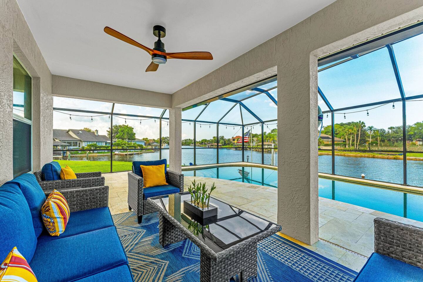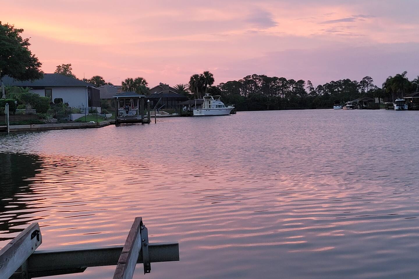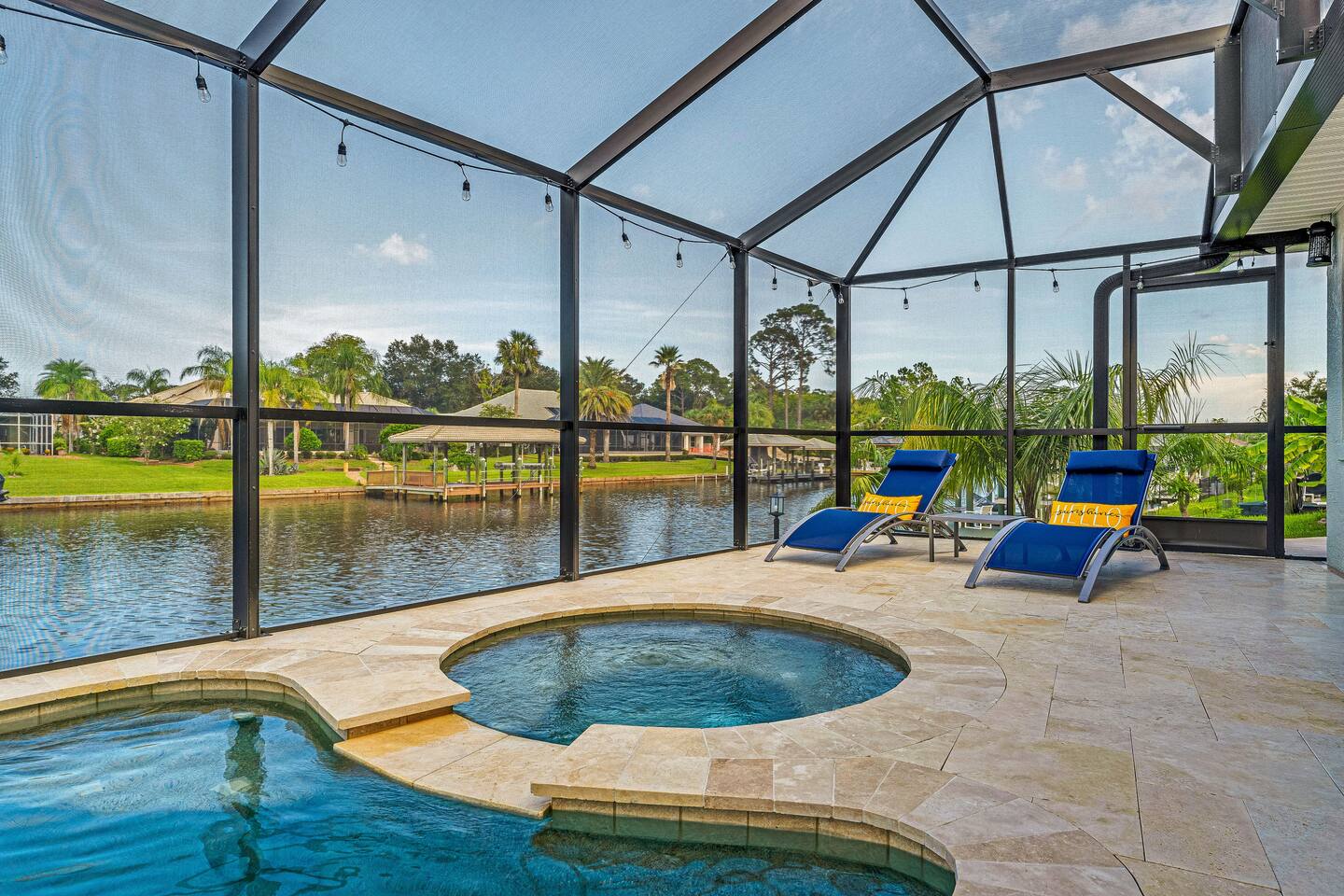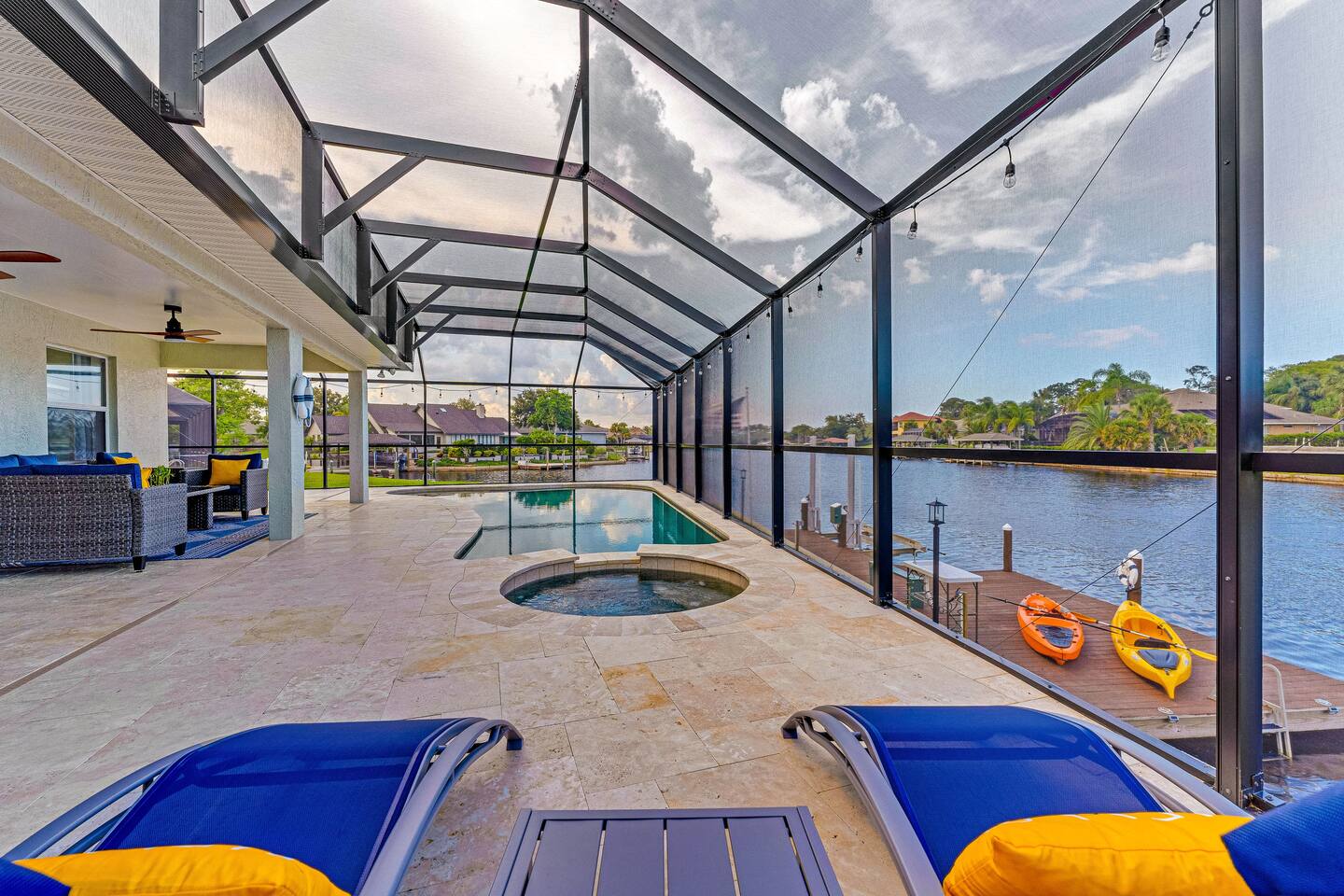 *180+ degree water views *Fully renovated resort style home * Luxury pool and hot tub *10 min close to the beach, 30 min to St. Augustine and Daytona *Close to restaurants/shopping * Work station-La-Z-Boy office chair, desk, monitor, keyboard * Saltwater dock: Sailboat Country * Game room: pool table, ping pong table, air hokey, foosball, arcades and more * Two Kayaks *Outdoor fire pit *Covered Weber BBQ *Outdoor shower *Fully equipped kitchen *Roku TVs-use your own tv service or free channels